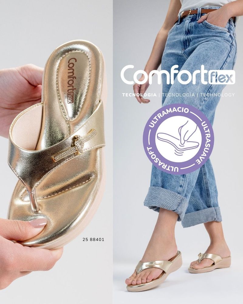 A tecnologia Ultra Macio garante suavidade extra na palmilha, oferecendo bem-estar prolongado e sensação de leveza a cada passo. O salto anabela proporciona estabilidade e equilíbrio, enquanto o solado flexível permite mobilidade natural dos pés, tornando o chinelo ideal para o dia a dia, passeios de lazer e ocasiões casuais com estilo.