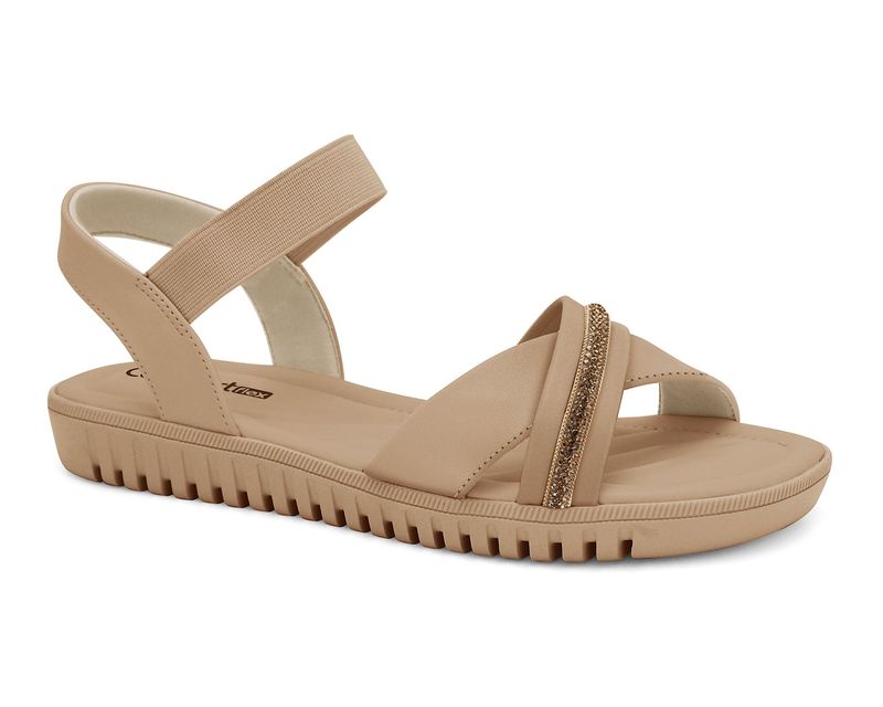 Sandália Feminina com Brilho Ouro Caqui Comfortflex 2443402-4