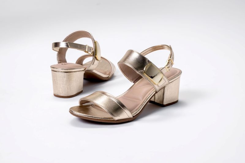 Sandália Salto Bloco Dourada Comfortflex 2562402-1