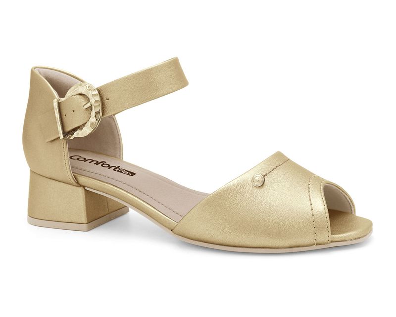 Sandália Salto Baixo Dourada Comfortflex 2564431-1