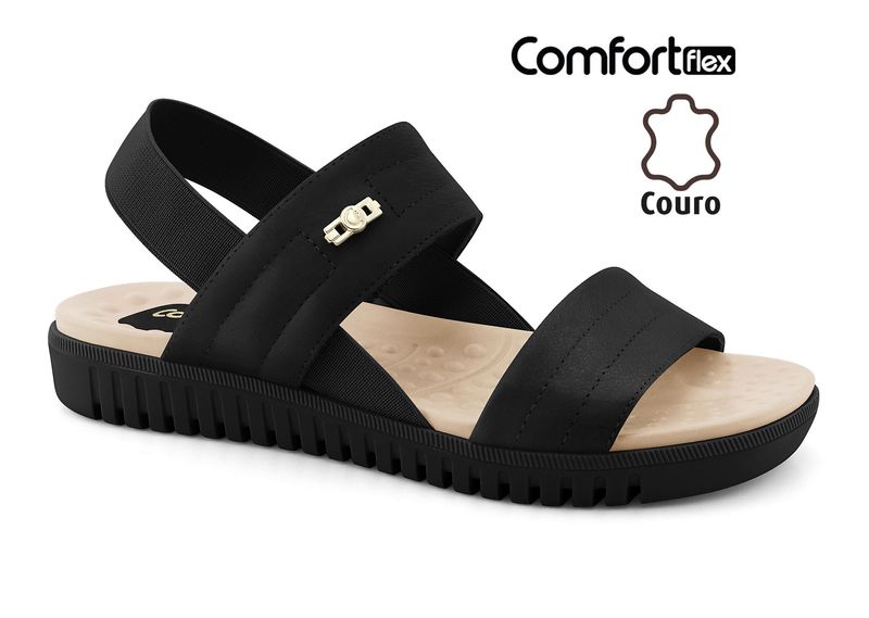 Sandália Papete Couro Preta Comfortflex 2345403-14