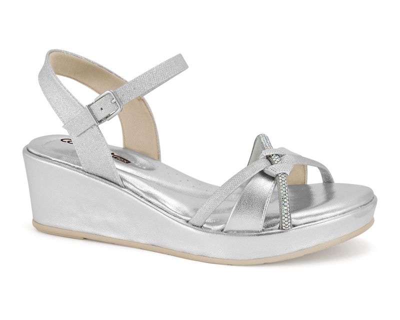 Sandália Anabela Prata Comfortflex 2553406-1