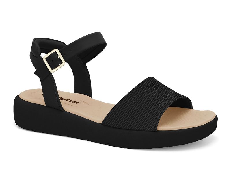 A Sandália Preta Papete Comfortflex com Fecho Ajustável é a escolha perfeita para mulheres que buscam conforto, praticidade e elegância em um único calçado. Seu design minimalista, com tiras largas texturizadas e ajuste em fivela dourada, combina com diversas ocasiões e estilos. . A palmilha acolchoada proporciona conforto prolongado, enquanto o solado leve e antiderrapante garante segurança ao caminhar. É como caminhar sobre as nuvens.