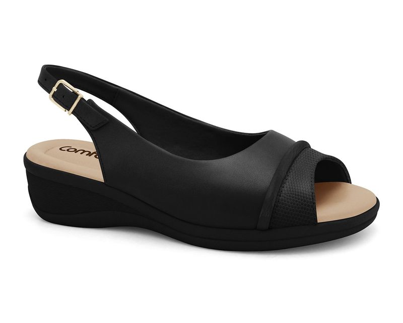 SAPATOSSLINGBACKSSlingback Anabela Preto Comfortflex 2588304-6